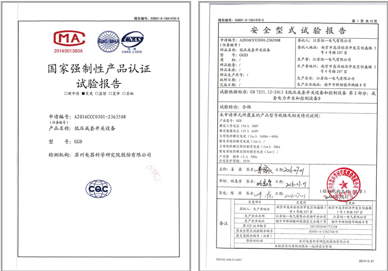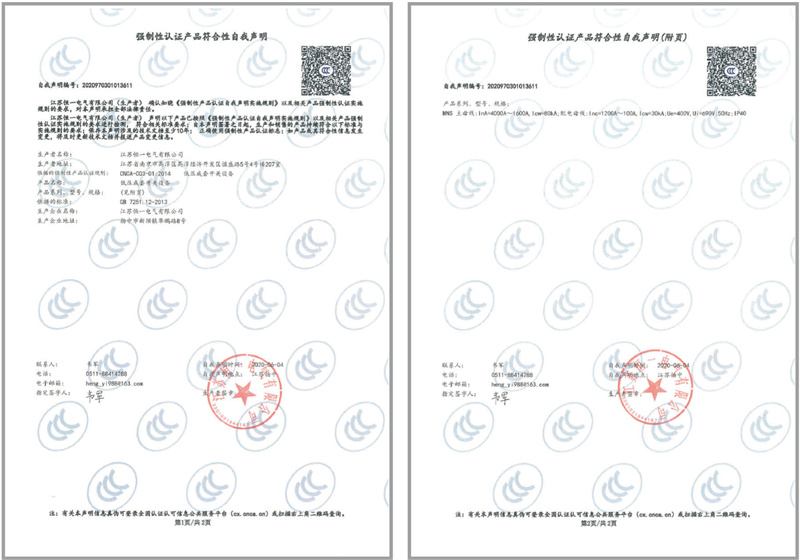 MNS低压成套开关设备4000A-1600A产品认证自我声明