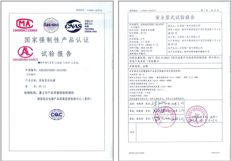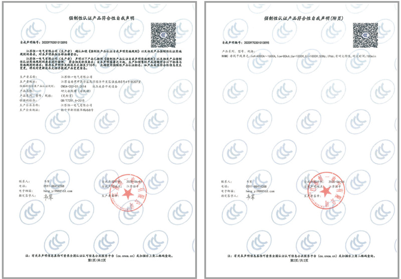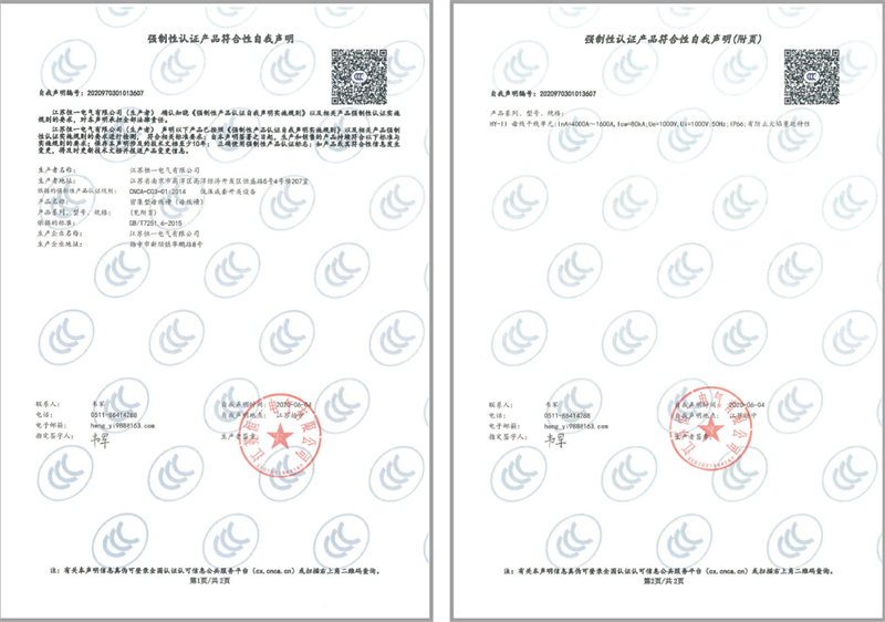 HY-II密集型母线槽4000A-1600A产品认证自我声明