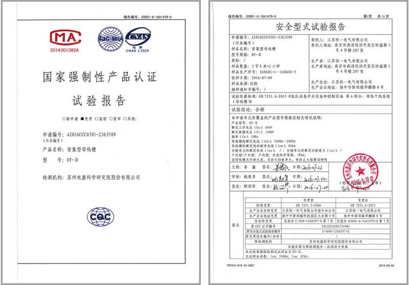 HY-II密集型母线槽5000A-2000A产品认证自我声明