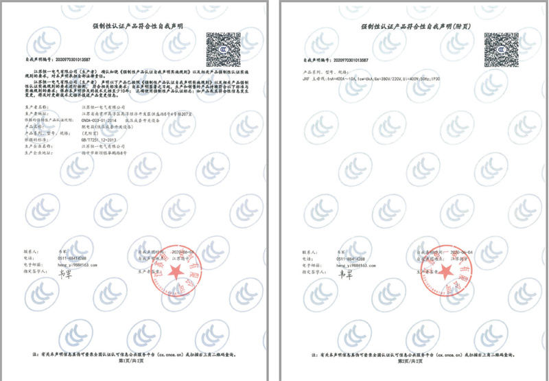 JXF配电箱产品认证自我声明