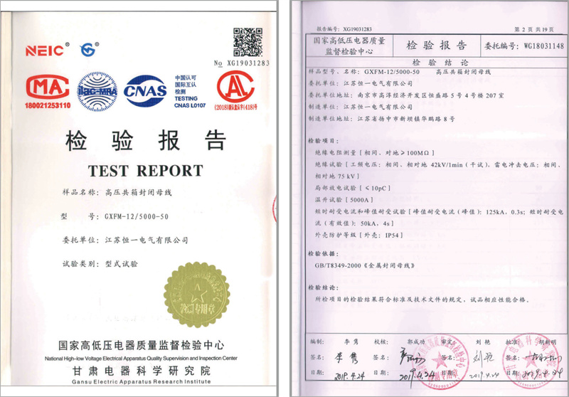 GXFM-12/5000-50高压共箱封闭母线检验报告