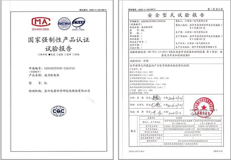 XL动力配电柜试验报告