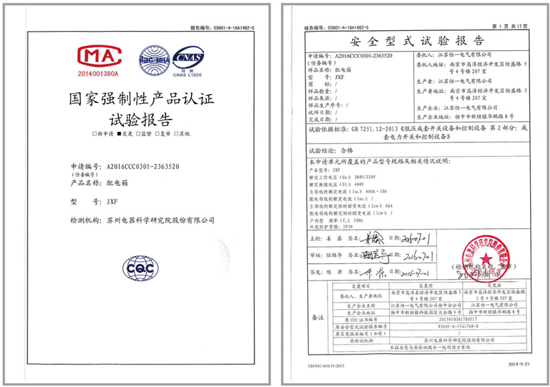 JXF配电箱试验报告